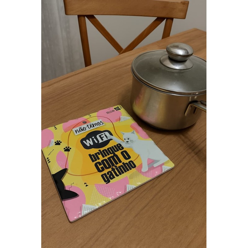 Quadro ou Descanso de Panela azulejo Brinque com o Gato